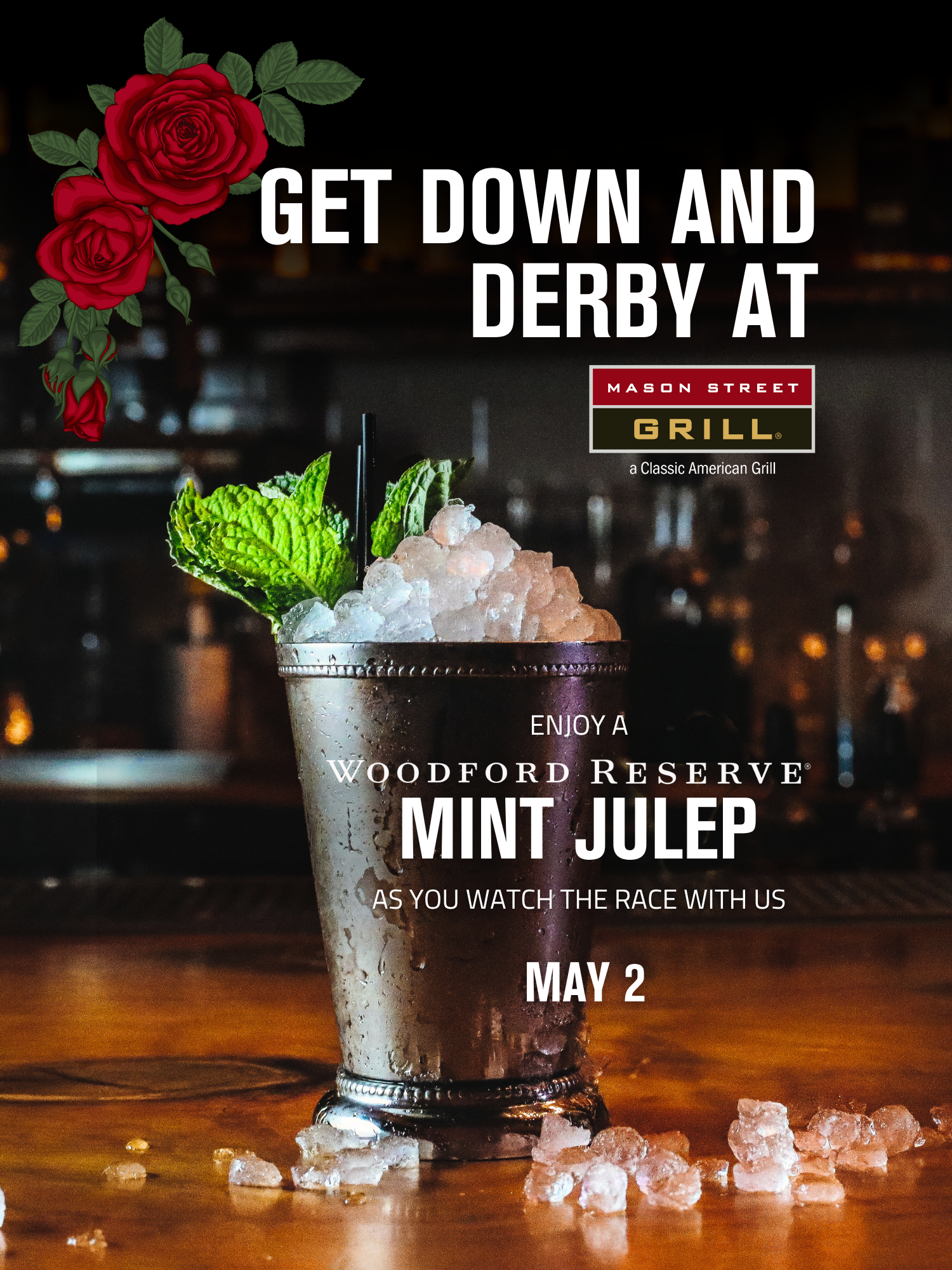 The race is on and there’s no better place to watch than Mason Street Grill! Join us for the most exciting two minutes in sports with a special themed cocktail menu crafted just for Derby Day, exciting giveaways and raffle prizes, and the electric energy of race day surrounded by great food and great company.